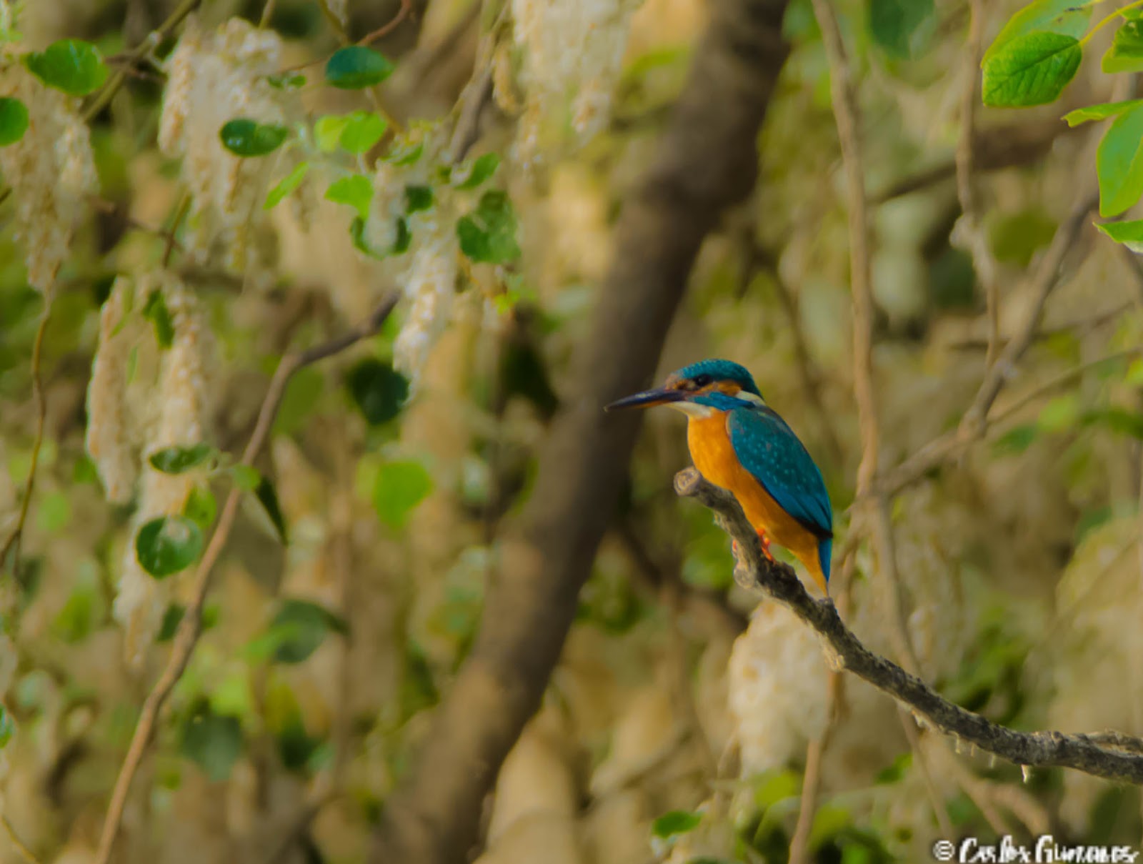 Todo estaba decidido para hacer el primer acercamiento, me acompaña Marcel y decidimos ubicar el «hide» cerca de la orilla próximo a uno grandes arbustos. Lamentablemente no conseguimos resultados, Martines Pescadores 1 – Fotógrafos 0, solo conseguimos una fotografía a “modo documental” de la existencia de las aves. No por ello disfrutamos de su vuelo, le vimos hacer pasadas cercanas a nuestro escondite pero sin hacer ninguna parada en los nuevos posaderos. Conclusión: No habíamos colocado bien el “hide”, teníamos que rectificar la ubicación.