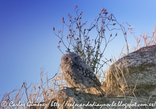 | Ejemplar de mochuelo (Athene noctua) oteando. |