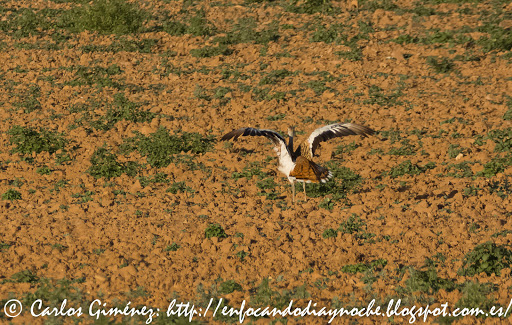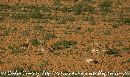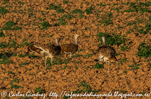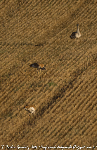 Fué un encuentro casual, iba en busca de poblaciones de Mochuelos comunes, recorriendo pedregales en los márgenes de los campos, mases y parideras, cuando de repente las vi a lo lejos. no me dieron más opción de acercamiento, forzando el zoom del objetivo puede tomar estas imágenes. A pesar de la lejanía, si pude comprobar la envergadura que tienen, y su majestuosidad, ya que la avutarda común (Otis tarda) es el ave voladora con más peso del mundo. Observé en un mismo paraje de la meseta soriana dos poblaciones distintas con un total de más de una docena de ejemplares, todo un hallazgo para mí.