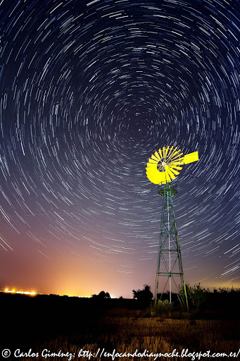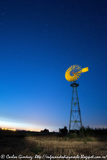 Una vez que hemos elegido la composición, en este caso condicionada por no querer trasnochar mucho, ya sabemos a que hora debemos de estar preparados junto al molino para disfrutar de una sesión de fotografía nocturna entre amigos.