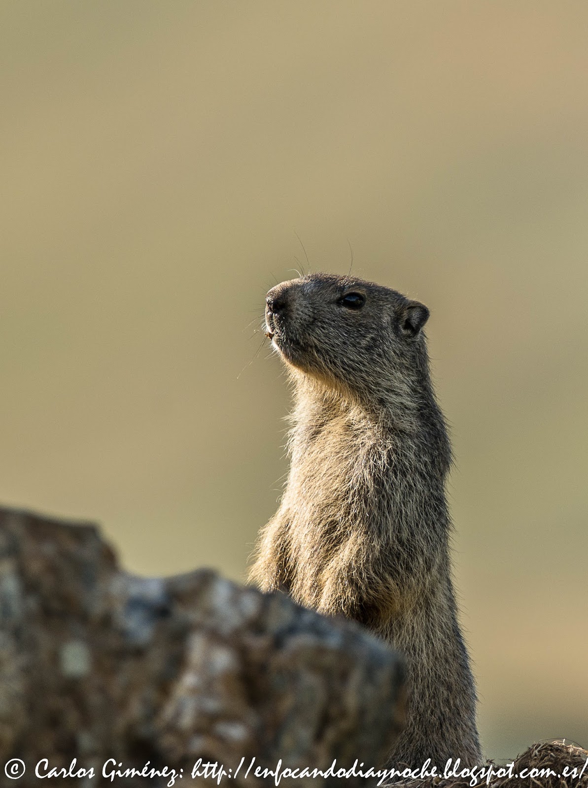 La marmota es un animal muy social y de hábitos diurnos, el mayor roedor de nuestra fauna, miembro de la familia de las ardillas. Como tal, tiene una gran agilidad con las manos. Las delanteras son en especial poderosas y las utiliza para excavar sus madrigueras. La guarida principal de verano tiene gran tamaño y complejidad, compartimentándose en diferentes cámaras destinadas a un uso determinado, como cámaras de cría o letrinas.